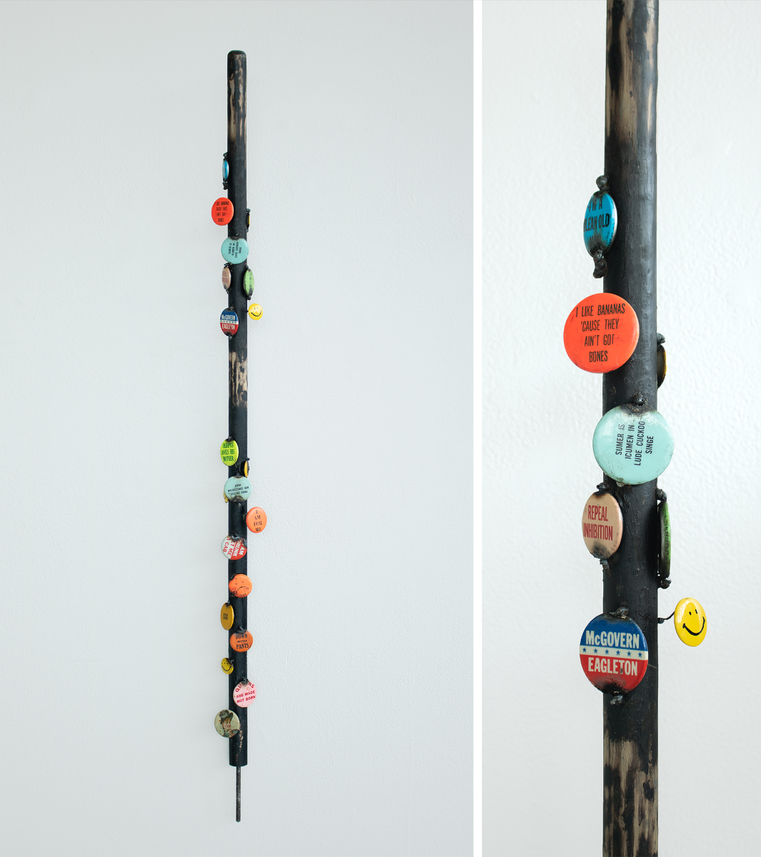 vintage counterculture pins welded to steel tub, enamel, & wax