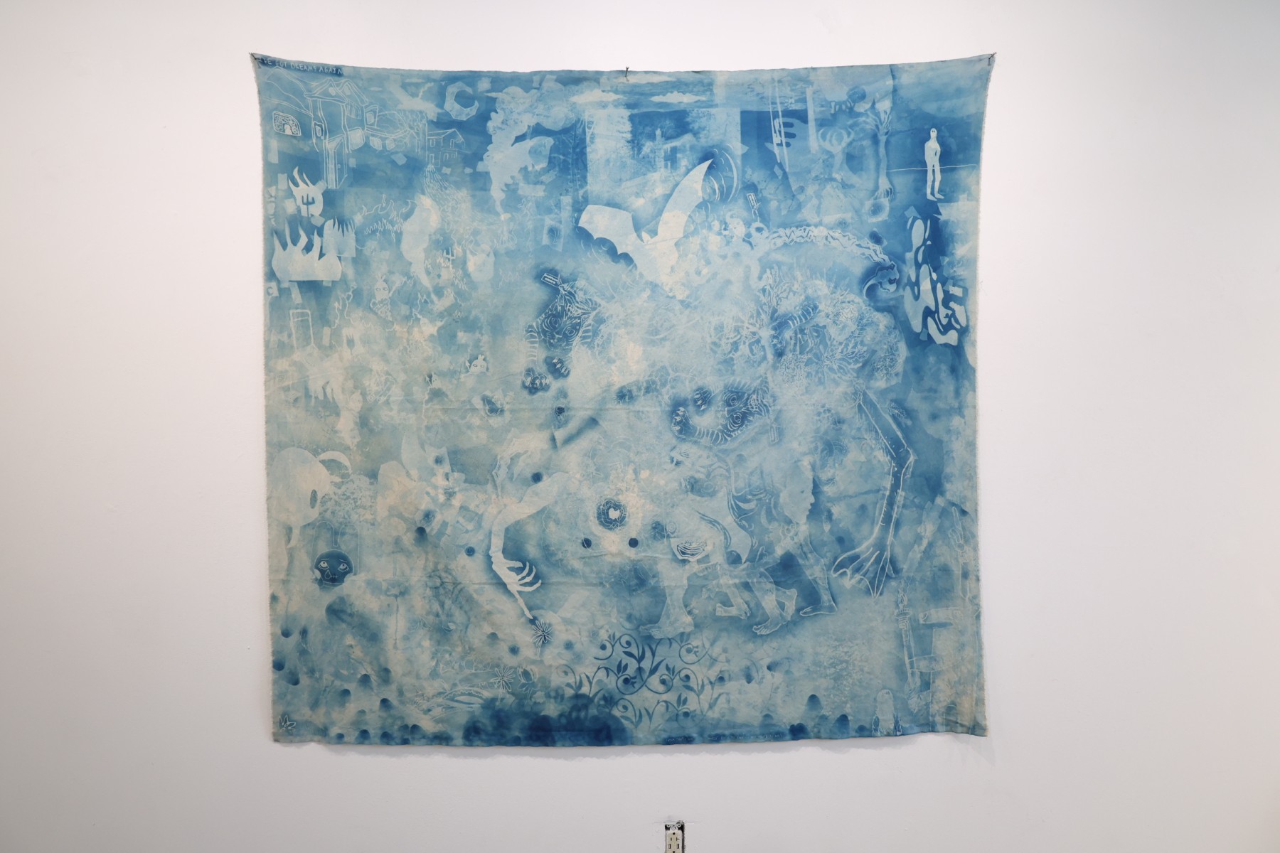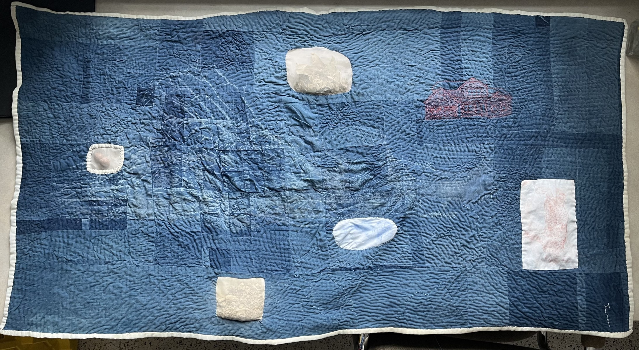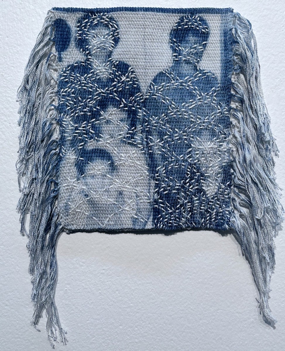 Cyanotype on hand woven cotton with Japanese Sashiko embroidery